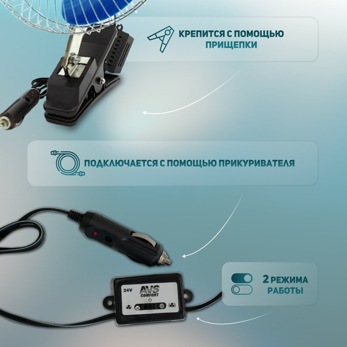 Вентилятор автомобильный AVS Сomfort 9041, 12 В 5", пластик, чёрный