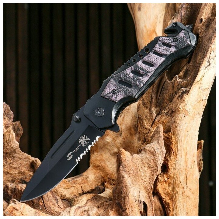 Нож складной Stinger, клинок из нержавеющей стали 9 см, рукоять из стали и алюминия, чёрный, арктический камуфляж (SA-582GY)