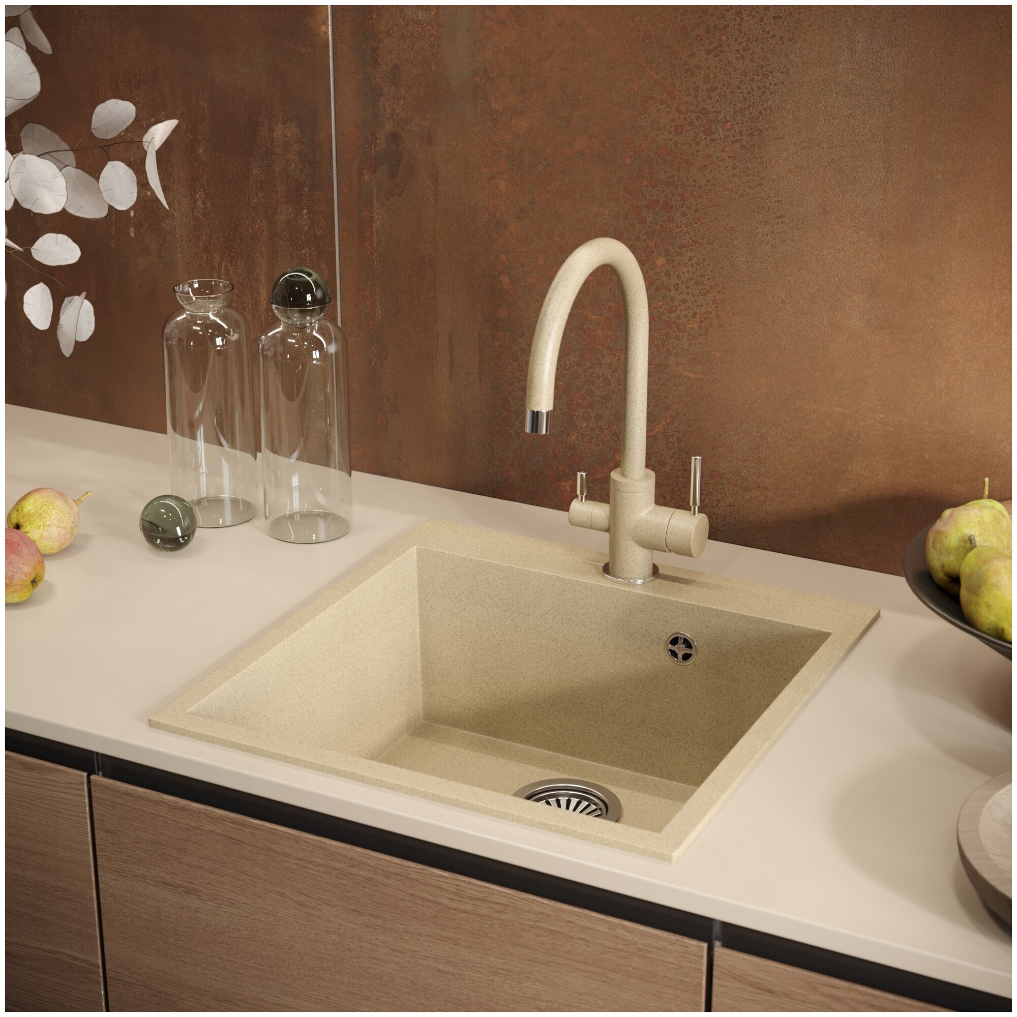 Мойка кухонная Domaci Солерно EMQ-1510.Q бежевая, 51х52 см, встраиваемая, кварцевая, квадратная 9 045 ₽