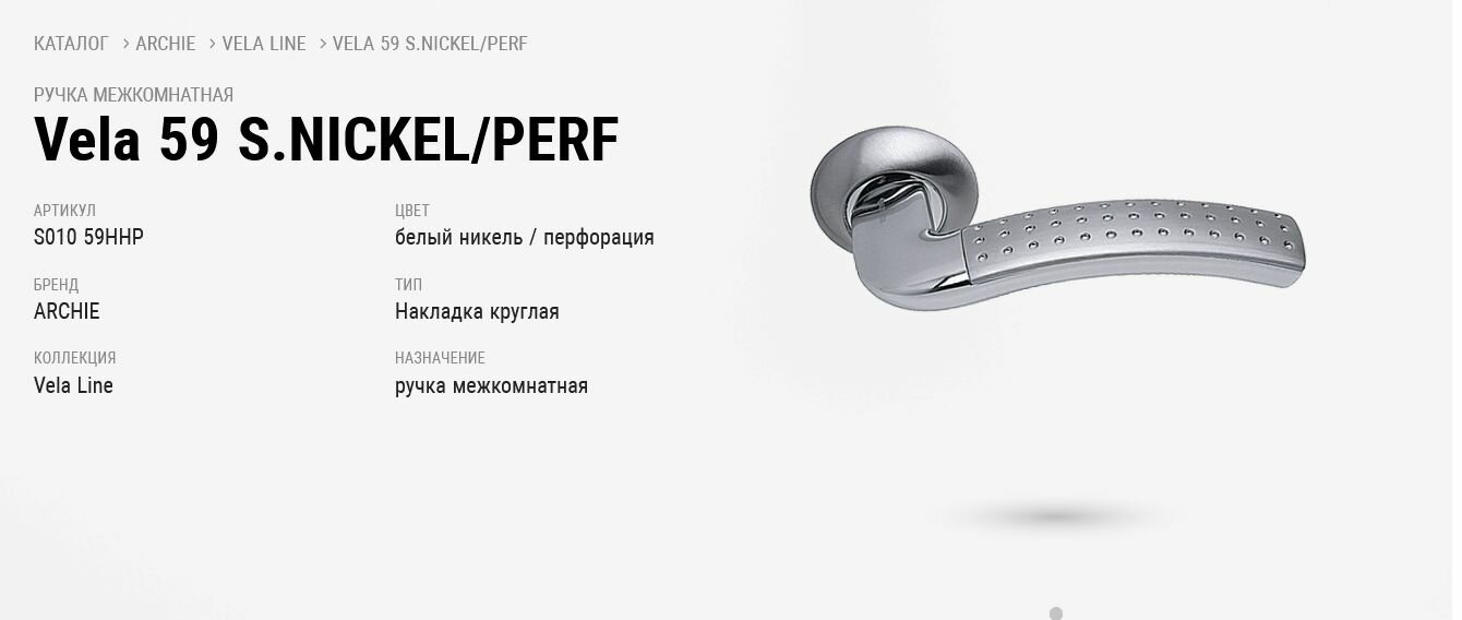 Ручка межкомнатная ARCHIE S010 59HHP Vela Line белый никель / перфорация 5 290 ₽