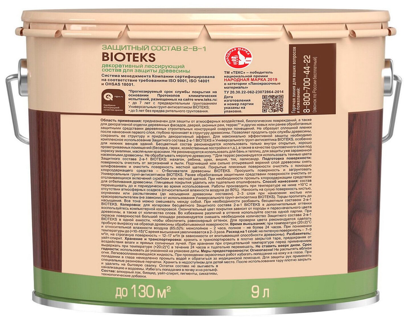 Текс BIOTEKS защитный состав 2-в-1 для наружных работ, махагон (9л)