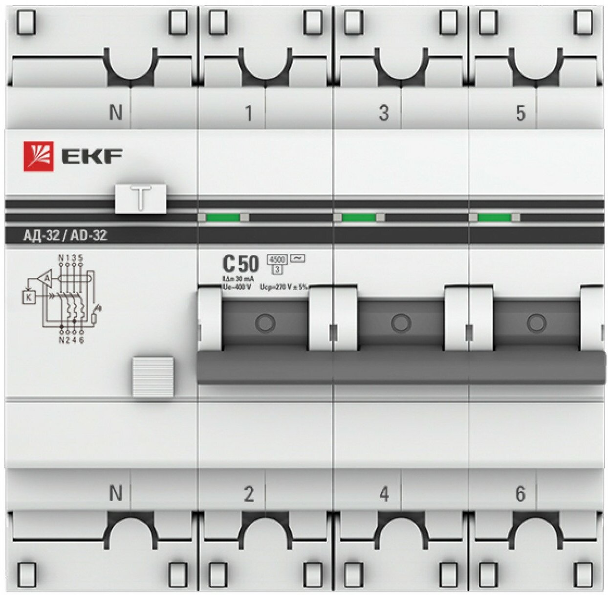 EKF PROxima АД-32 Диф. Автомат (C) 3P+N 50А/30мА тип АС 4,5кА , электронный