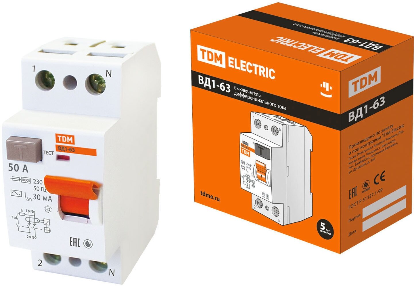Отзывы на Устройство защитного отключения TDM ВД1-63 2Р 50А 30мА SQ0203-0016