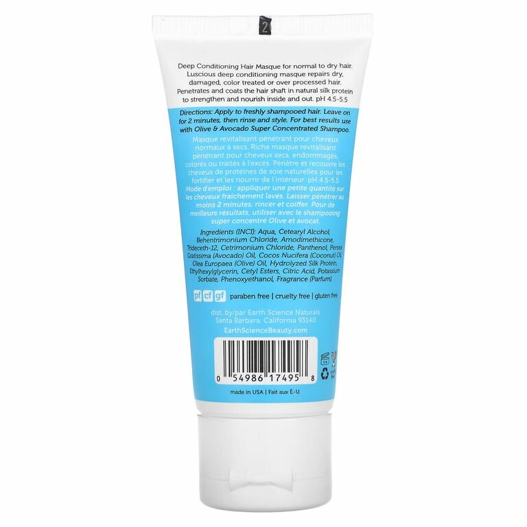 Earth Science, Глубокое кондиционирование, маска для волос, олива и авокадо, 59 г информация: