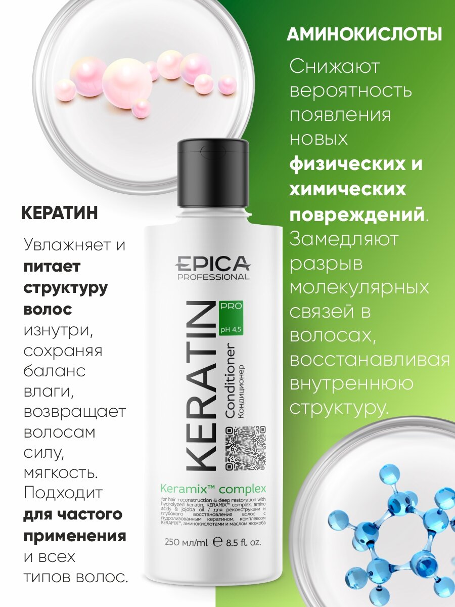 EPICA Professional кондиционер Keratin Pro для реконструкции и глубокого восстановления волос, 250 мл информация: