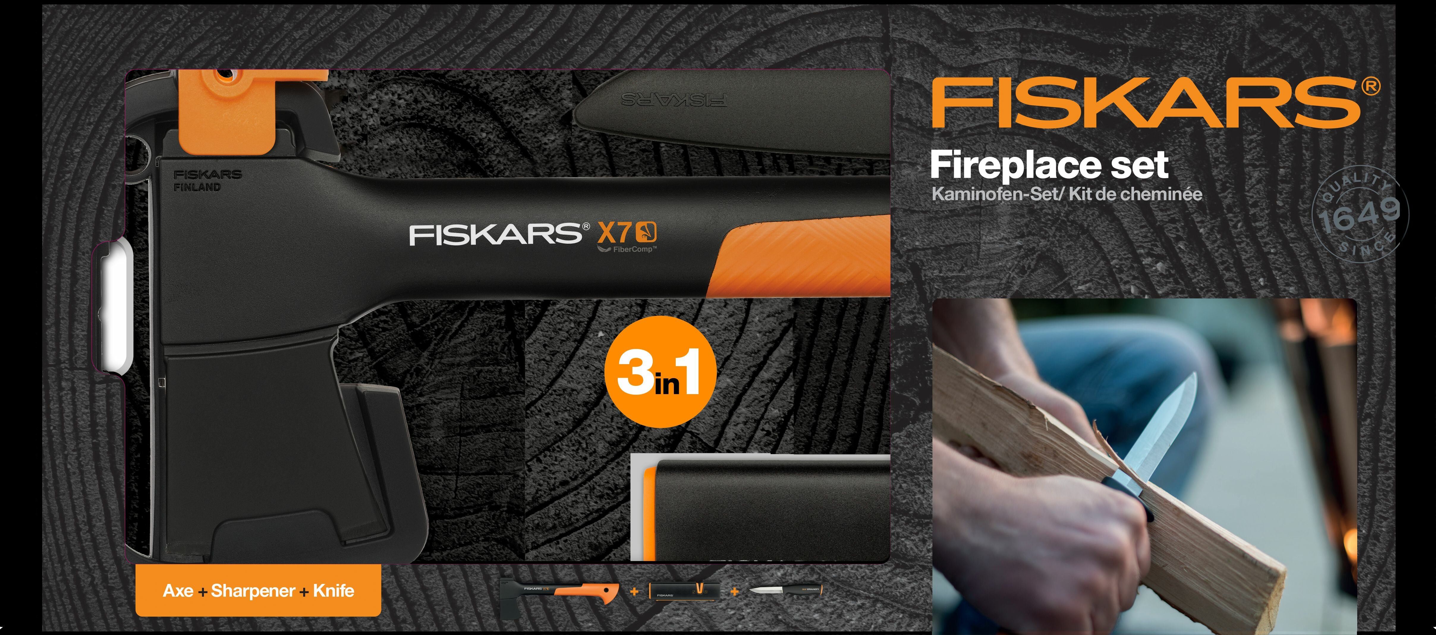 Набор FISKARS топор универсальный Х7+точилка Xsharp+нож К40 (1059024) 7 082 ₽