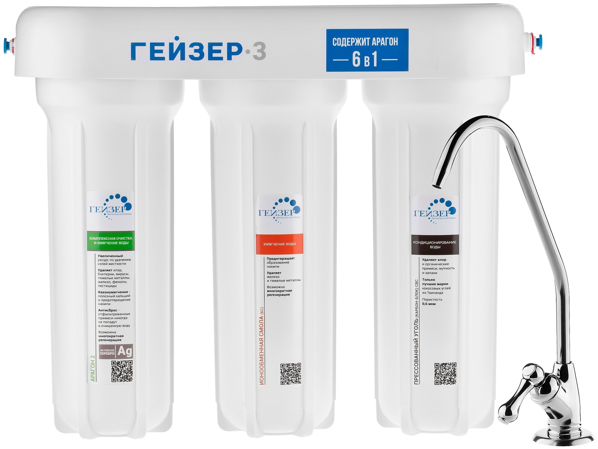Фильтр под мойку Гейзер 3-ИВС Люкс для жесткой воды 3 ступени кран в комплекте 15 795 ₽