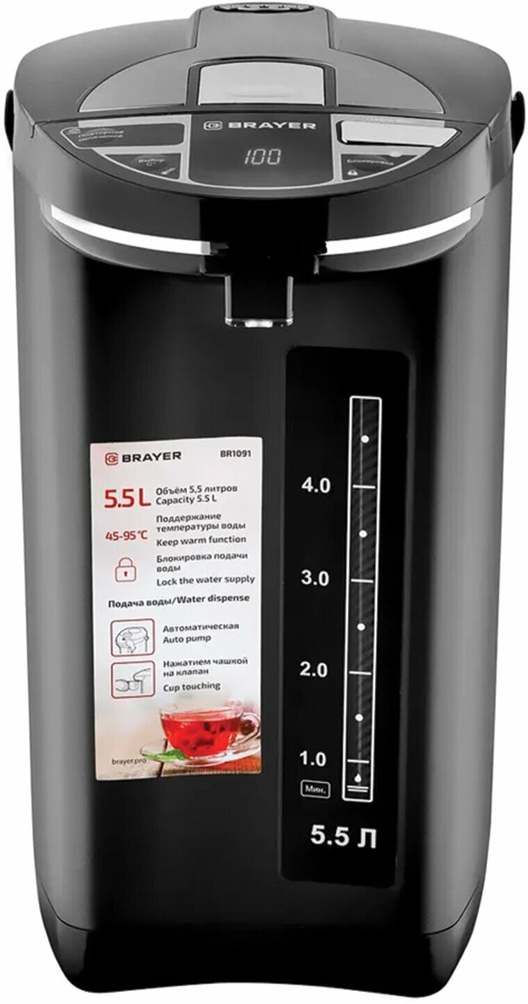 Термопот BRAYER BR1091, 1450 Вт, 5.5 л, регулировка t°, LCD дисплей, чёрный