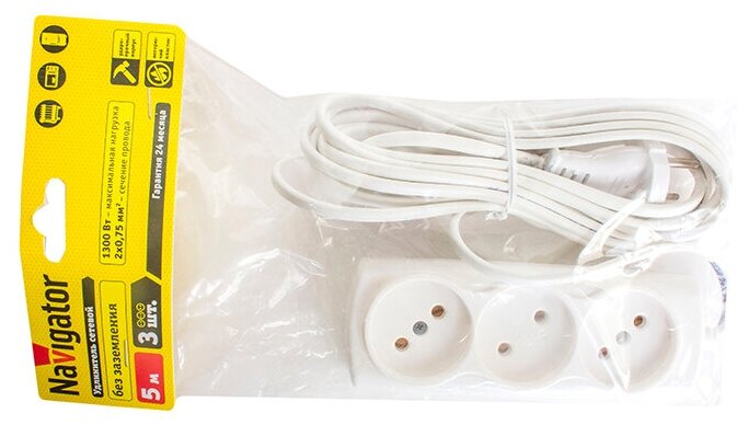 Отзывы на Удлинитель Navigator 71 450 NPE-S1-03-500-X-2x0.75 б/з 3 гн. ШВВП 5м, цена за 1 шт.