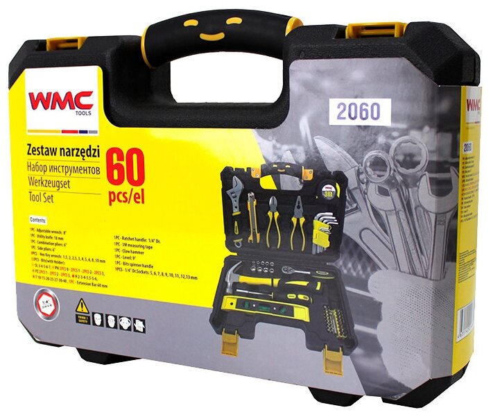 Набор инструментов 60 предметов слесарно-монтажный (шарнирно-губцевый,, WMC TOOLS WMC2060 (1 шт.) информация:
