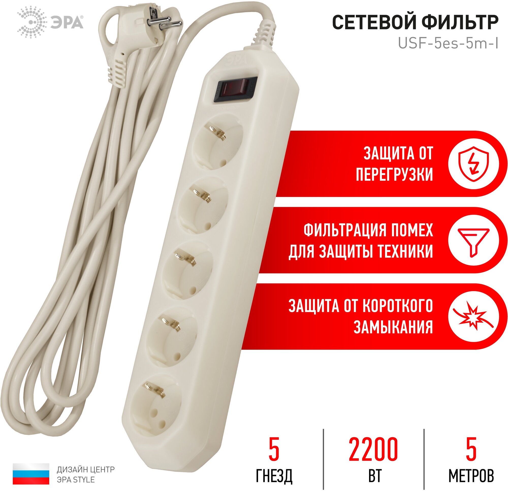 Отзывы на ЭРА USF-5ES-5M-I Фильтр сетевой 5м 10А 2200Вт 5 гнезд с заземлением слоновая кость ЭРА