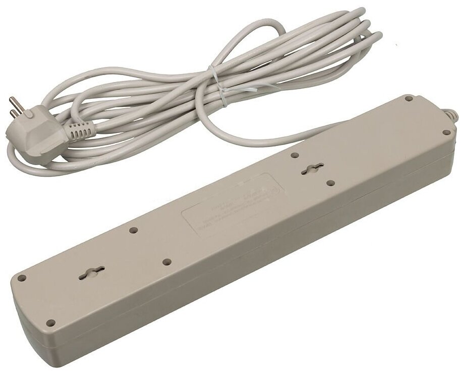 Удлинитель бытовой "Люкс" УЛ05В выкл, 5 гнезд, 1,5м, с/з, с з/ш, ПВС 3х1мм2 16А/250В бело-серый TDM