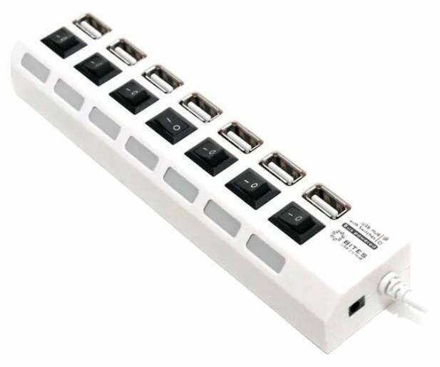 Разветвитель USB 5Bites HB27-203PWH хаб - концентратор 7 портов USB2.0 + выключатели + блок питания линейка - белый