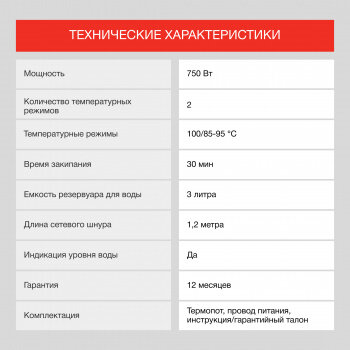 | Мощность в режиме поддержания температуры | 50 Вт |