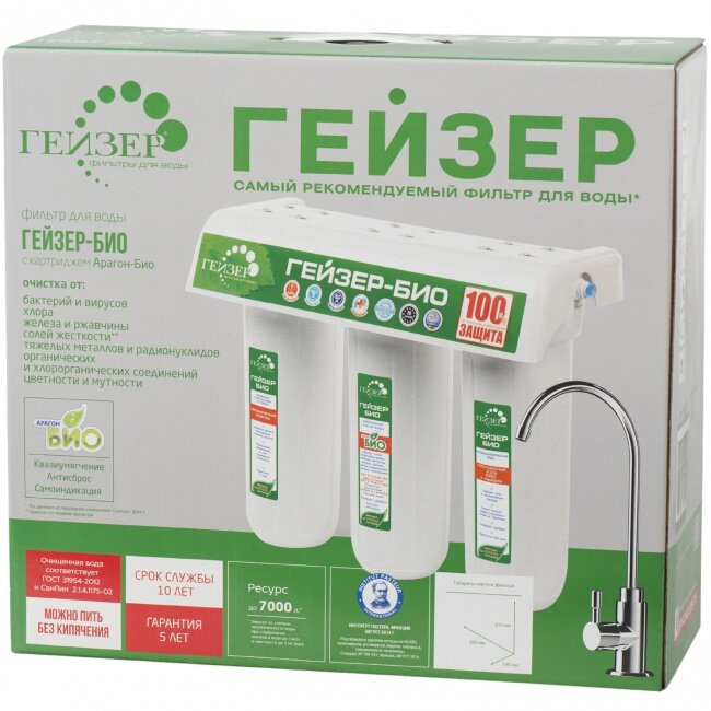 Фильтр для воды под мойку Гейзер Био 331, с краном, идеальное решение для семей с маленькими детьми, 100% удаление бактерий и вирусов, 16016