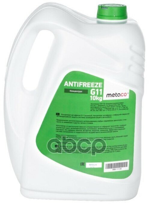 METACO 99811130 Антифриз концентрат Metaco зеленый G11 10л
