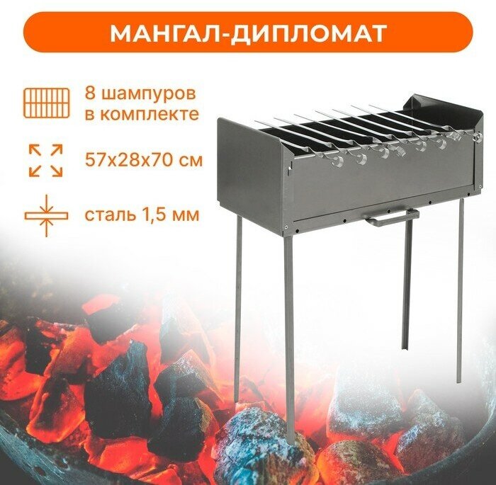 10 цен на Мангал-дипломат «кедр» + 8 шампуров, 570 x 280 x 700, сталь 1,5 мм