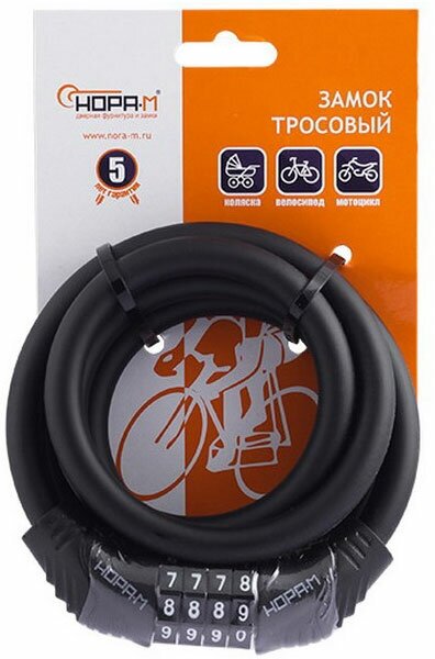 Замок-трос велосипедный Нора-М №21 кодовый - Черный - 10x1200 мм