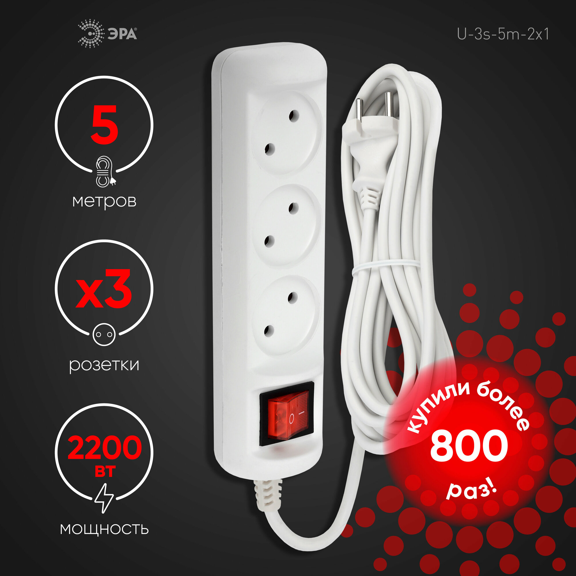 10 цен на Удлинитель 3х5м без заземл. 10А IP20 U-3s-5m-2х1 ПВС 2х1 с выкл. Эра Б0044051