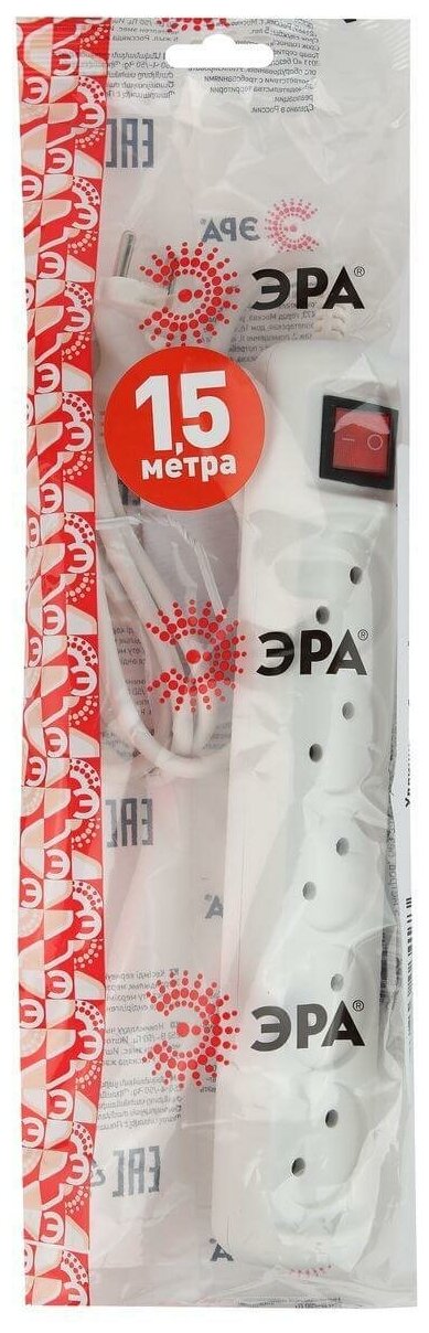 Отзывы на Удлинитель 5х1.5м без заземл. 10А IP20 U-5s-1.5m-2х1 ПВС 2х1 с выкл. Б0044055 Эра