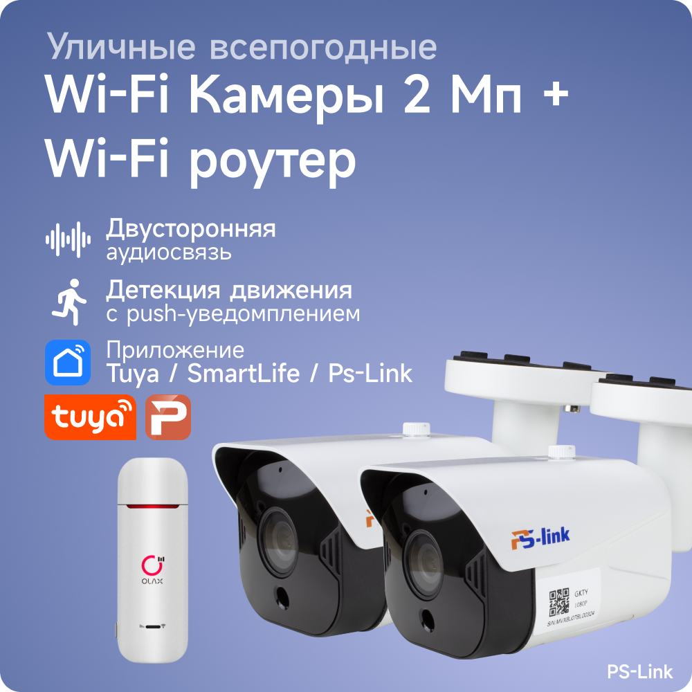 10 цен на Комплект видеонаблюдения 4G PS-link TB202-4G с записью на SD карту, 2 камеры, 2Мп