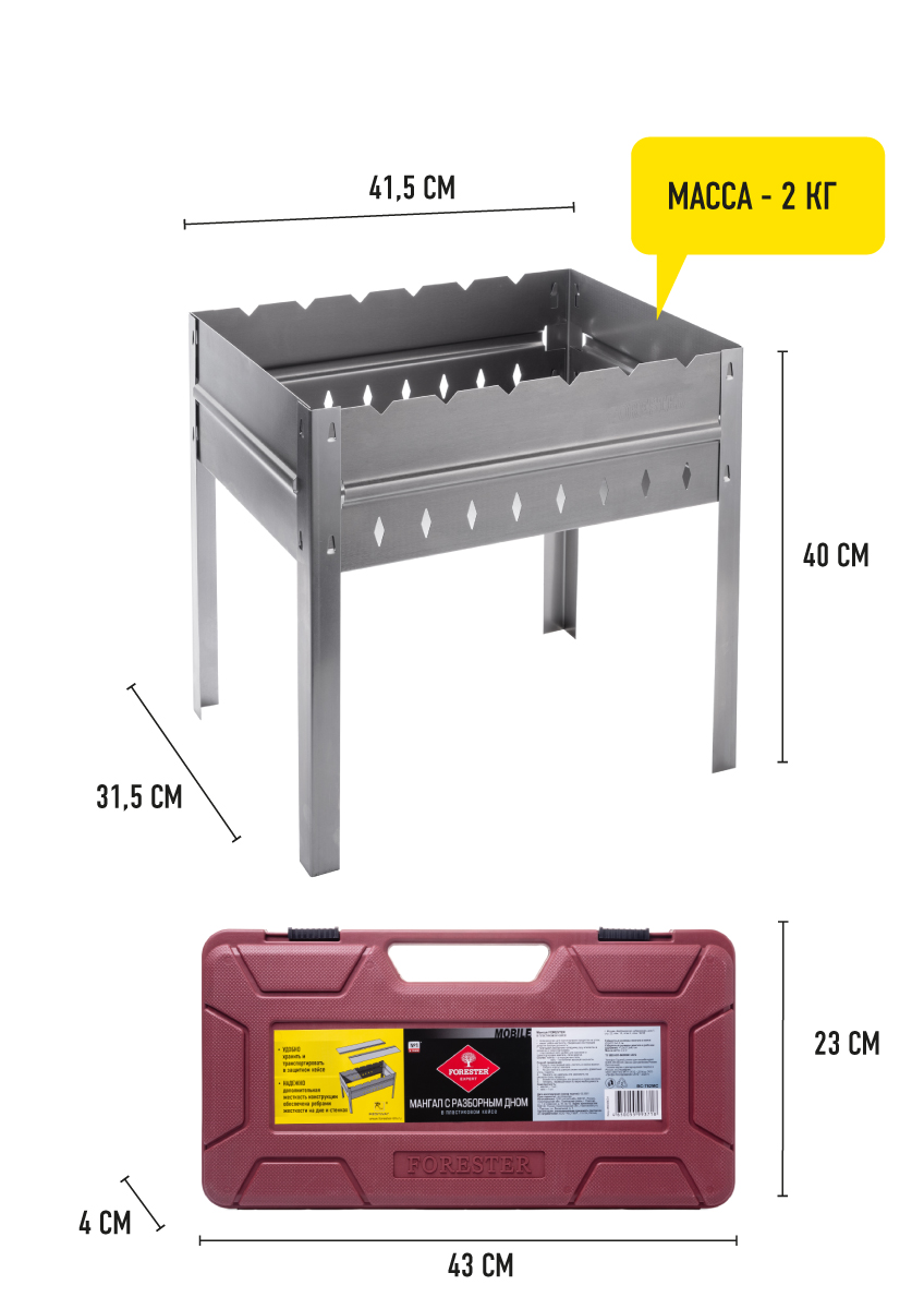 Отзывы на Мангал сборный Forester Mobile со складным дном в пластиковом кейсе, 42х32х40 см