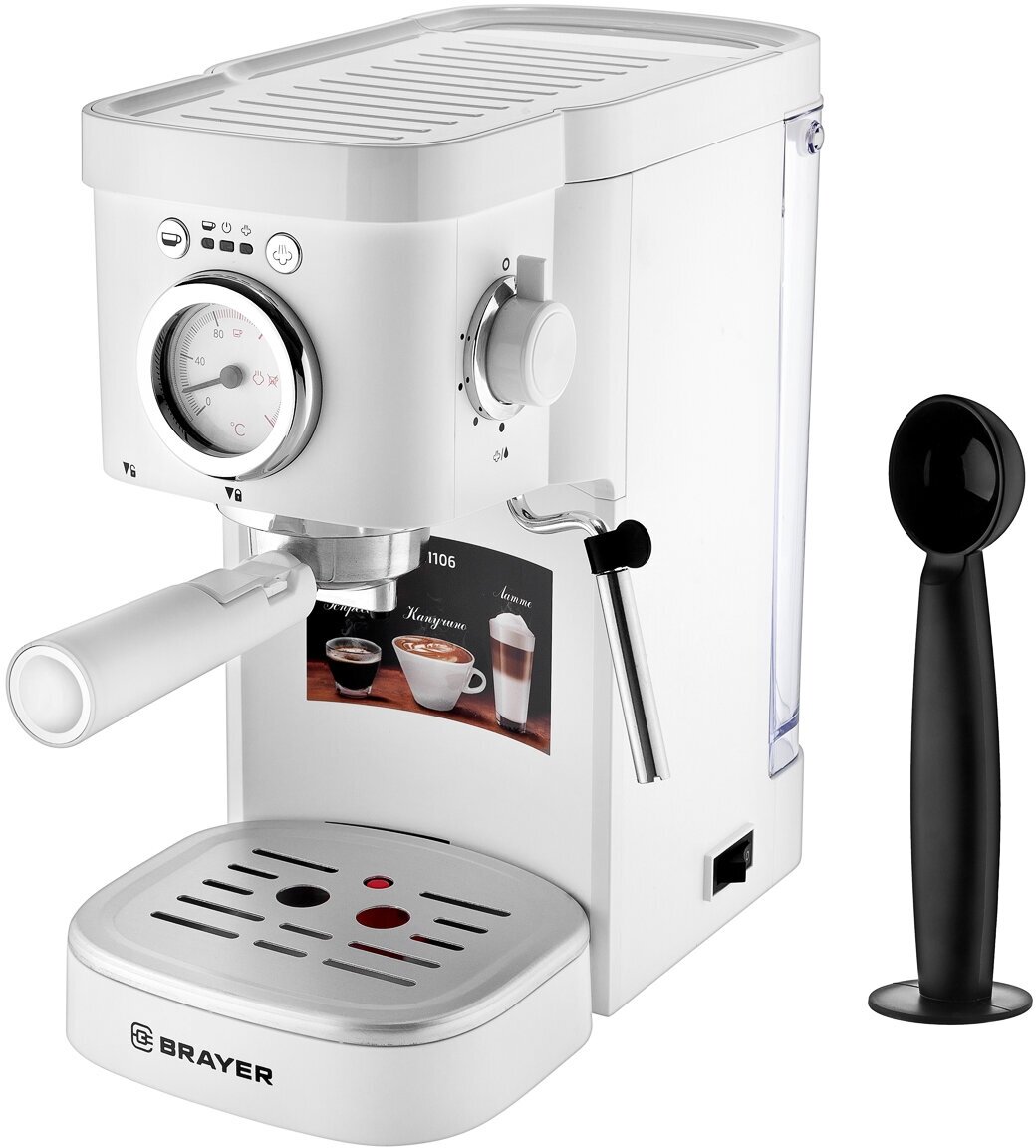 Отзывы на Кофеварка Brayer BR1106, 1100 Вт, 15 бар, встроенный термометр, капучино, эспрессо, латте