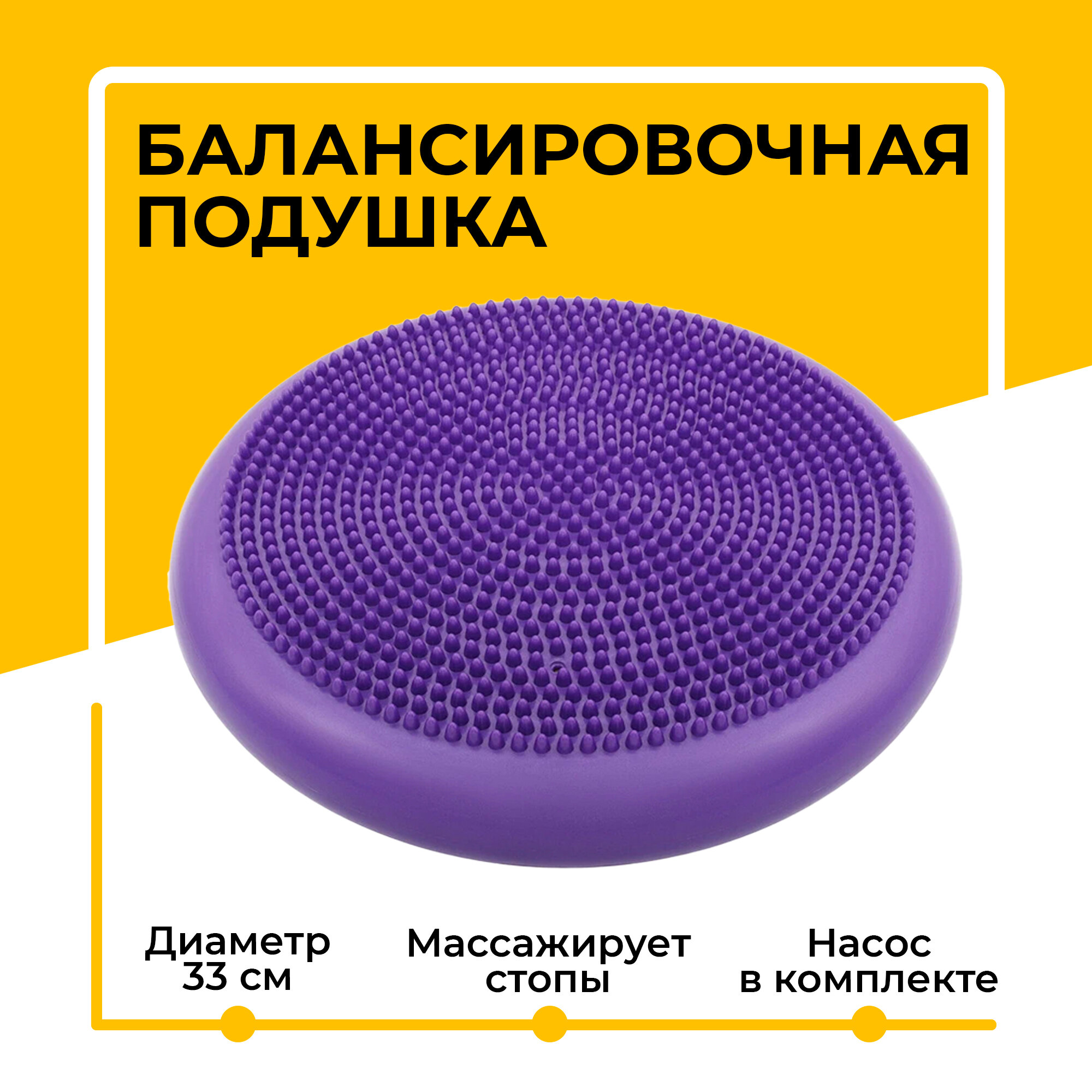 Отзывы на Балансировочная подушка массажная (диск) для фитнеса и йоги, с насосом, Ø - 33 см, фиолетовая