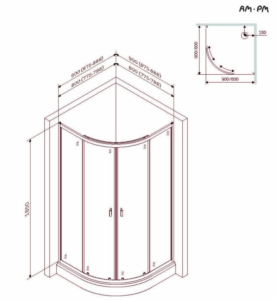 Душевой поддон Am.Pm W88T-205-090W X-Joy Twin Slide 90x90