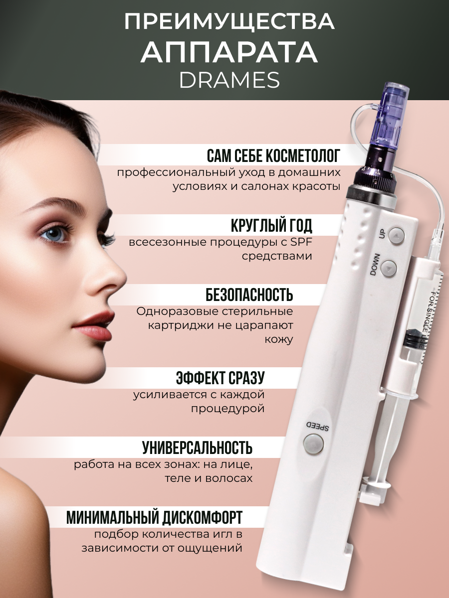Отзывы на Dr.pen DraMes Medoderma Дермапен / Аппарат для фракционной мезотерапии с подачей раствора / электрический мезороллер для лица , белый