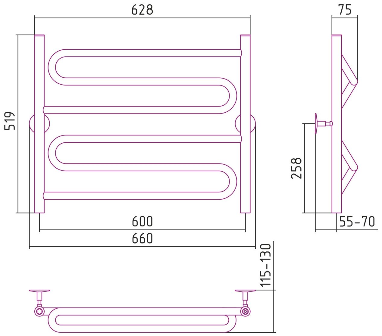Отзывы на Полотенцесушитель водяной Стилье Универсал-51 600х600 (2) Z 21 арт. 00651-6060