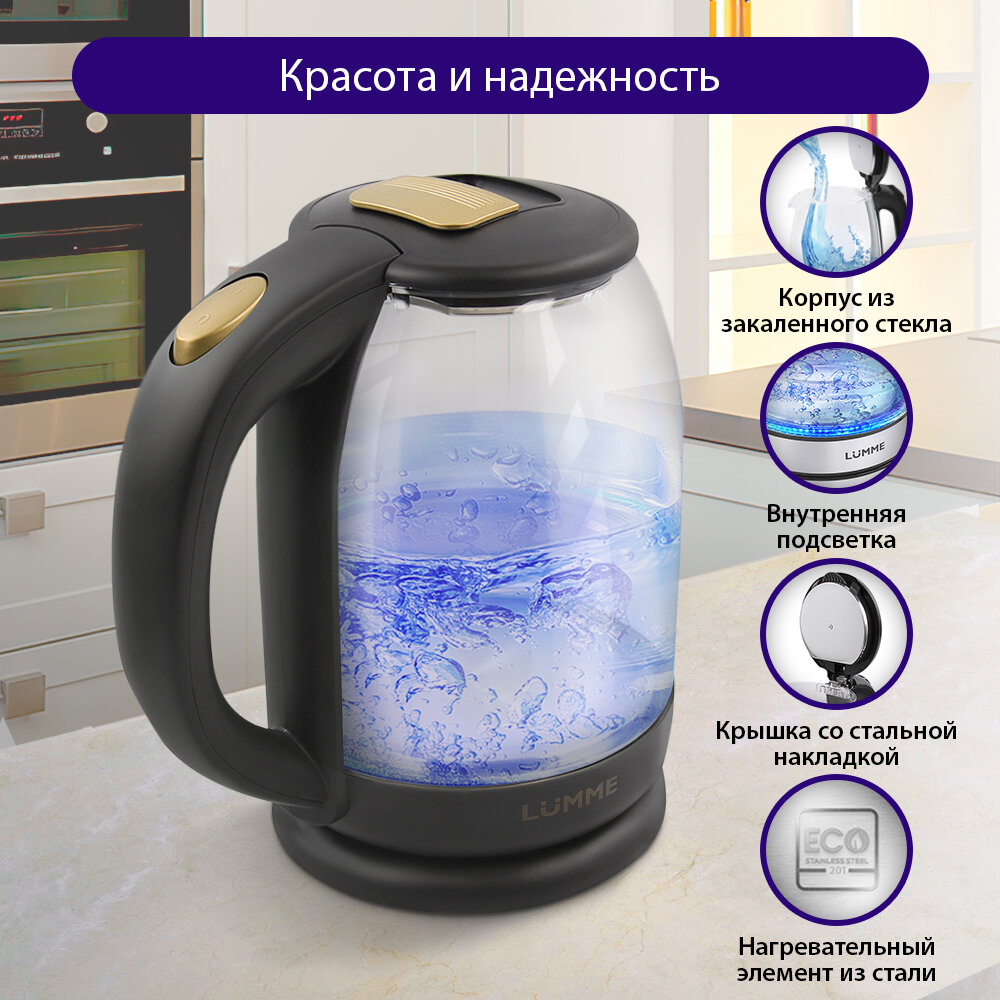 Электрический чайник LUMME LU-KT4115A черный стеклянный с подсветкой 2 л