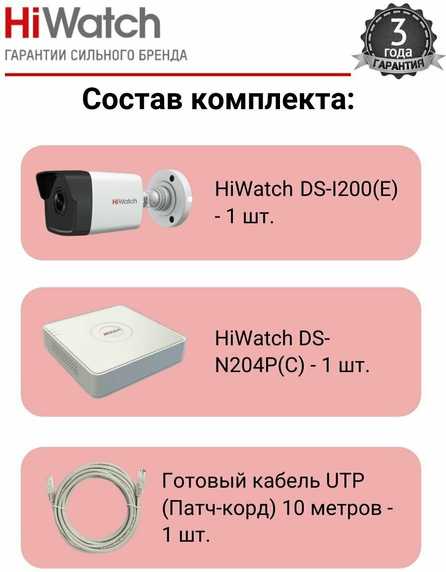 10 цен на Комплект видеонаблюдения IP POE на 1 уличную камеру 2 МП HiWatch