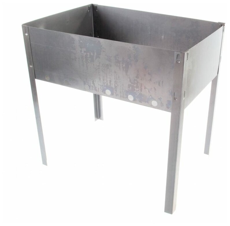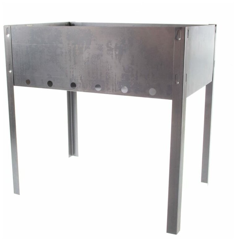 Мангал 800 мм. с полкой-решёткой и полкой под казан, сталь рифленая-усиленная 3 мм. разборный, с полкой под дрова