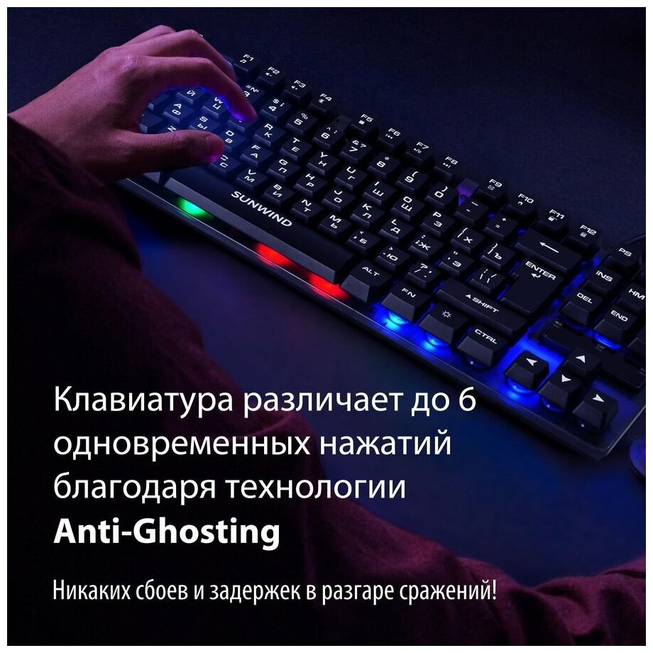 Компактная игровая клавиатура SUNWIND, клавиатура с подстветкой RGB, мембранная клавиатура, черная