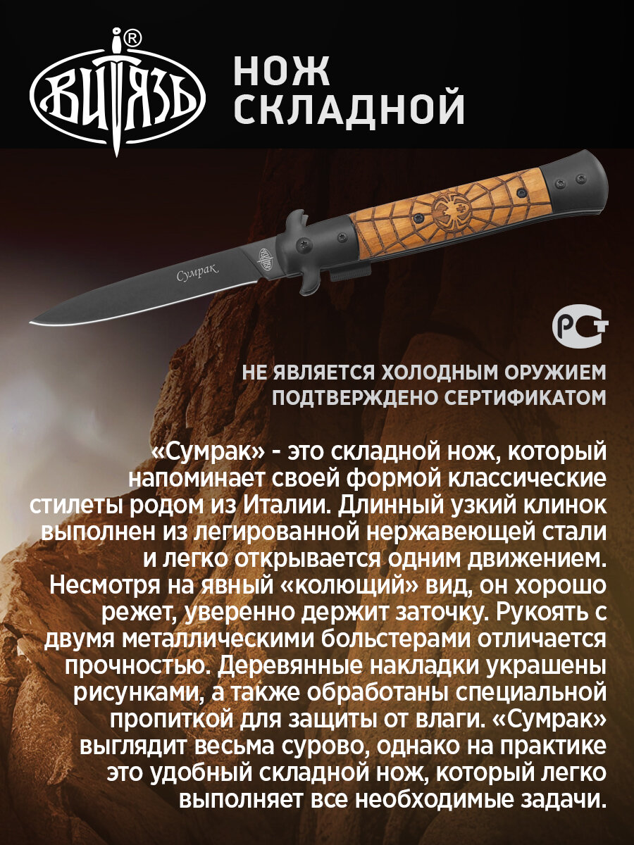 Витязь Нож складной "Сумрак - паутина" сталь - 65х13, рукоять - дерево, 23 см