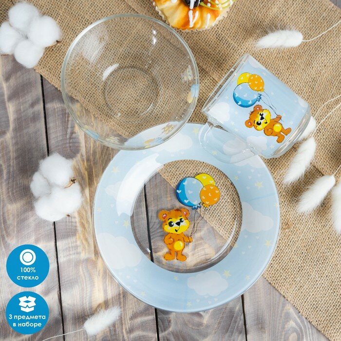 10 цен на Доляна Набор детской посуды Доляна «Мишутка», 3 предмета: кружка 200 мл, миска 450 мл, тарелка d=20 см