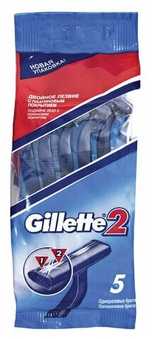 Бритвенные станки одноразовые Gillette 2, 5 шт./В упаковке шт: 1