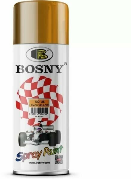 BOSNY 25 Краска желтый лимон RAL1003 акриловая аэрозоль 400мл BOSNY информация: