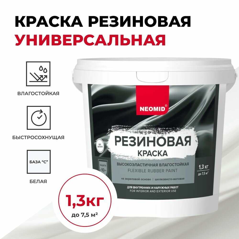 Резиновая краска NEOMID Белый (1,3 кг) / Для фасадов, для стен и потолков в помещениях повышенной влажности