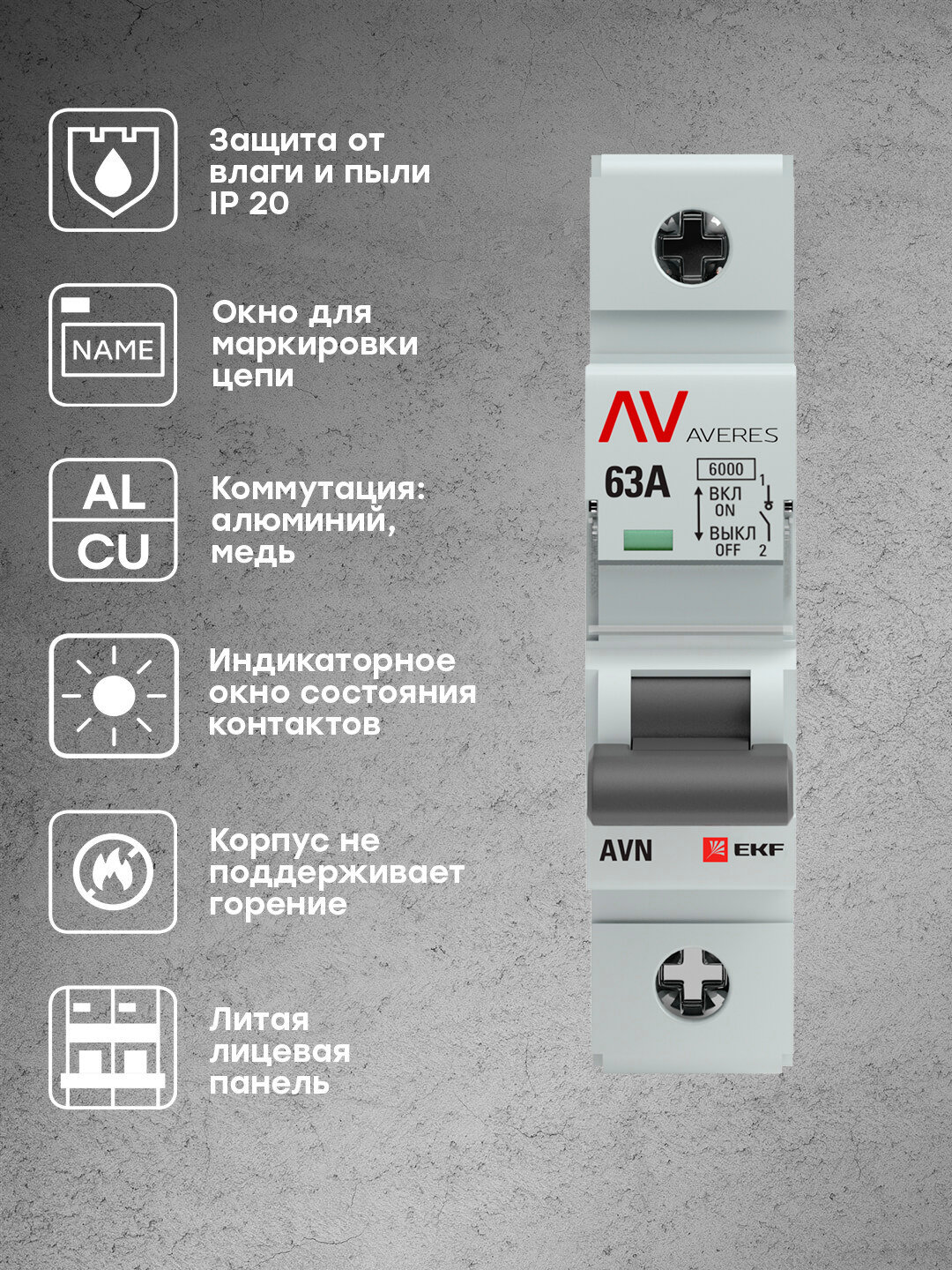 Выключатель нагрузки AVN 1P 63A AVERES, EKF AVN163AV (1 шт.)