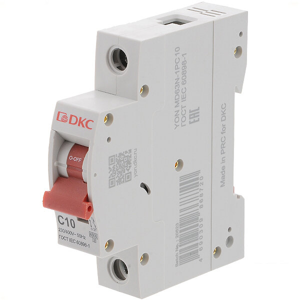 Выключатель автоматический модульный YON 10А 1П однополюсный C 6кА MD63-1C10-6 DKC