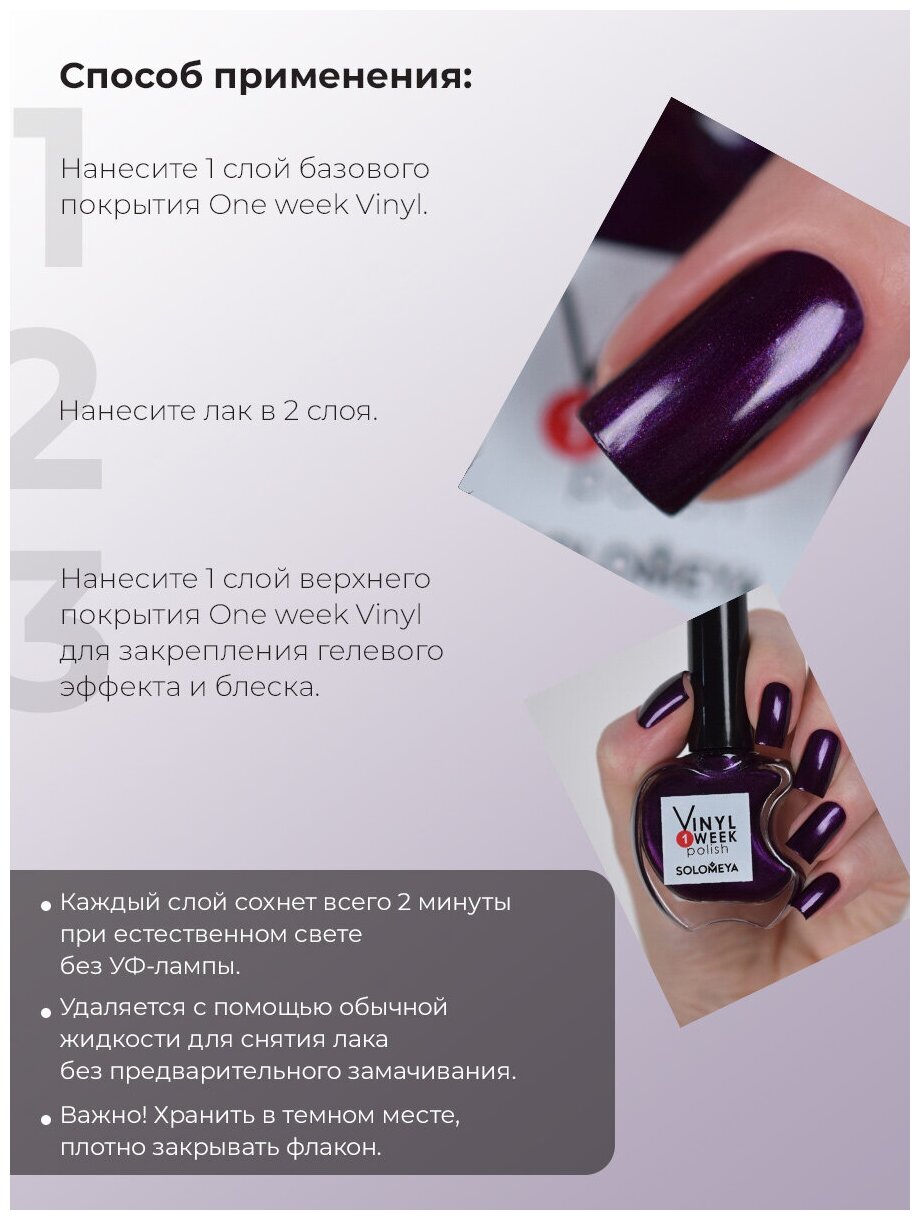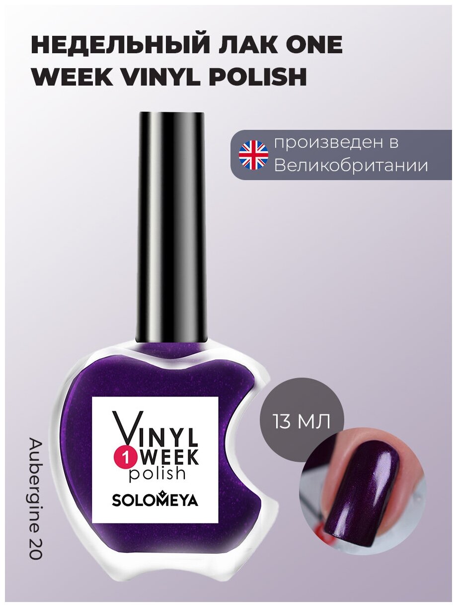 Лак для ногтей стойкий Solomeya, недельный лак для ногтей, глянцевый цвет Баклажан, One Week Vinyl Polish Aubergine 20, 13 мл информация: