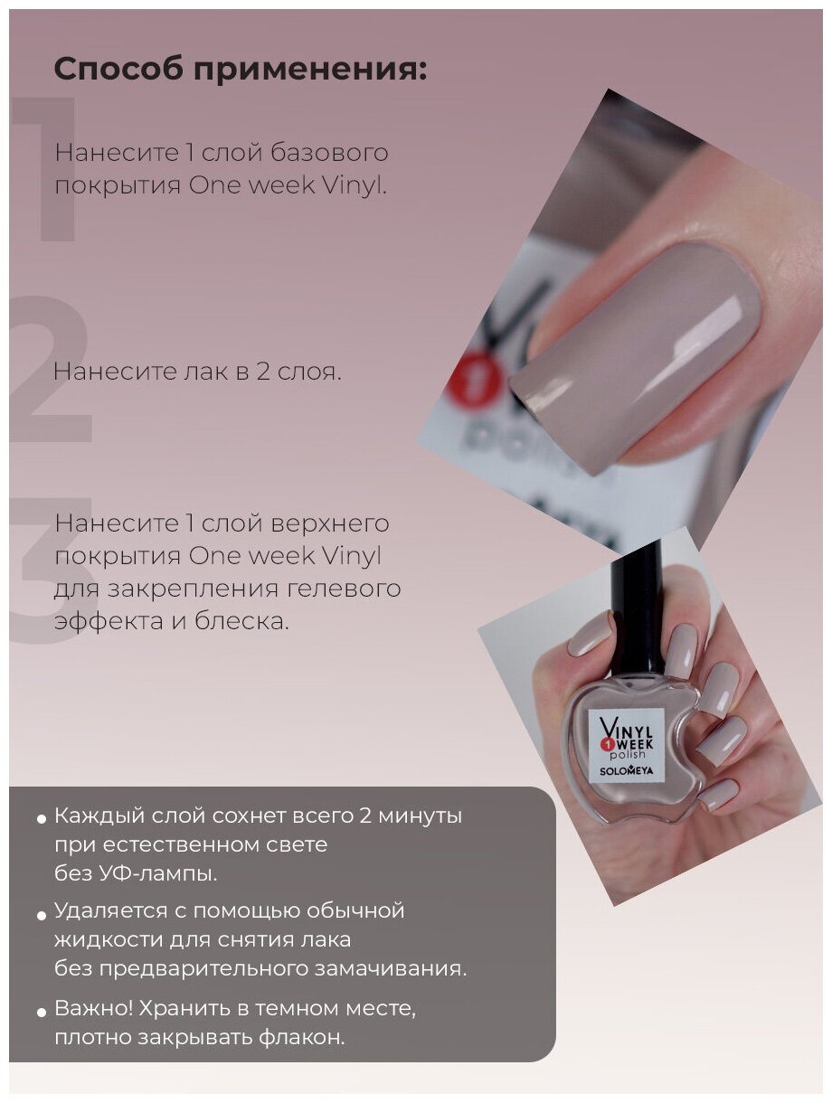 Лак недельный Solomeya One Week Vinyl Polish Cinereous 7, 13 мл . информация: