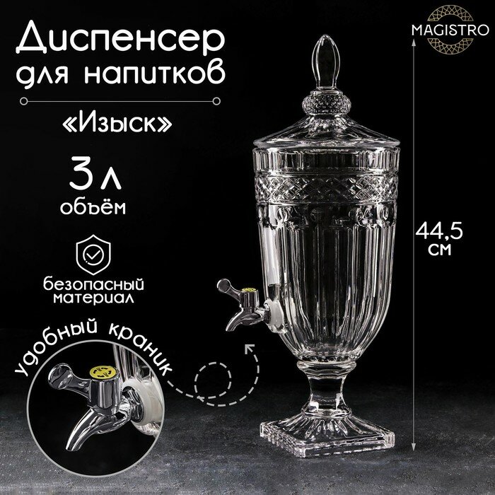 Диспенсер для напитков стеклянный Magistro «Изыск», 3 л, 17×44,5 см информация: