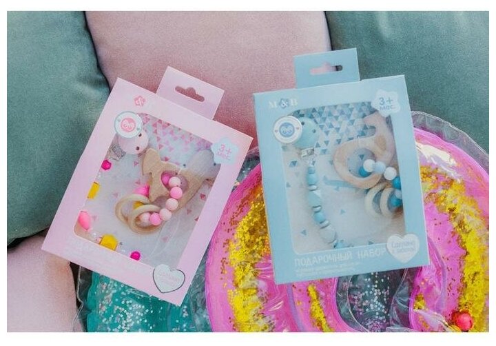 Mum&Baby Подарочный набор: держатель для соски-пустышки и грызунок-прорезыватель "Малыш"