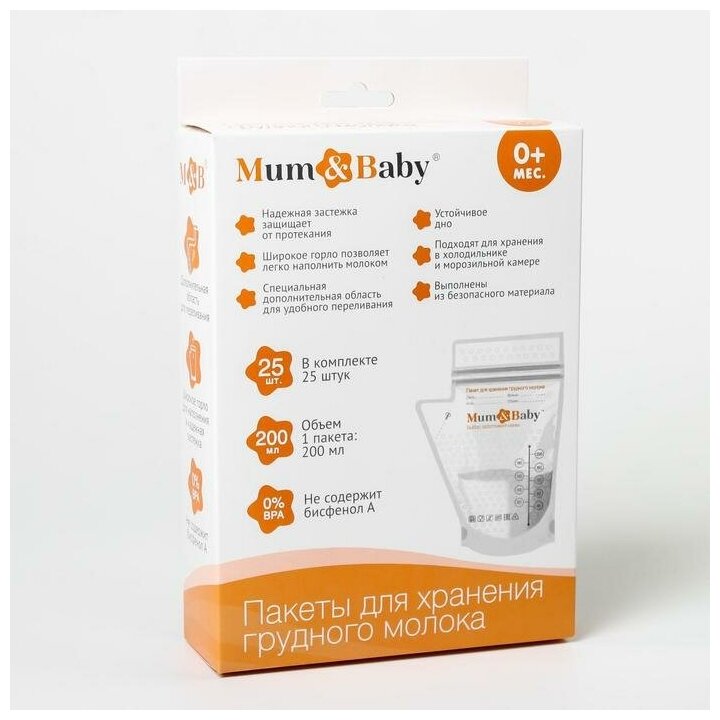 Mum&Baby Набор пакетов для хранения и заморозки грудного молока, 200 мл, 25 шт. информация: