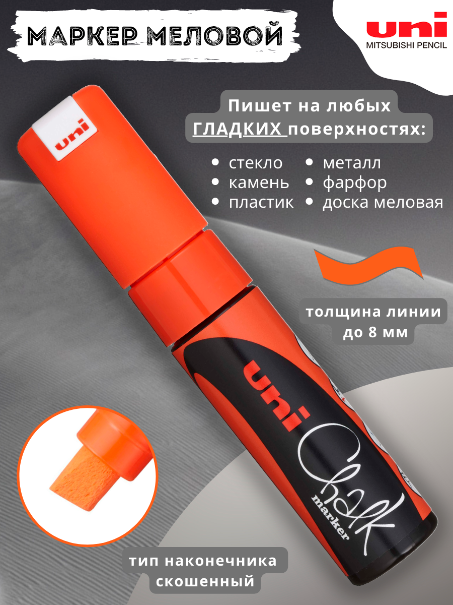 Маркер меловой UNI "Chalk", 8 мм, оранжевый, влагостираемый, для гладких поверхностей, PWE-8K F.ORANGE В комплекте: 1шт.
