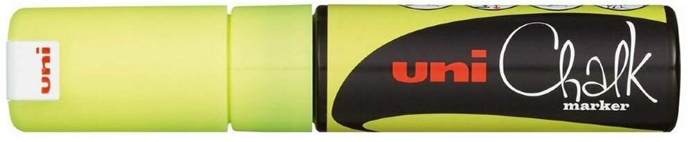 Маркер меловой UNI "Chalk", 8 мм, желтый, влагостираемый, для гладких поверхностей, PWE-8K F.YELLOW (арт. 142637)