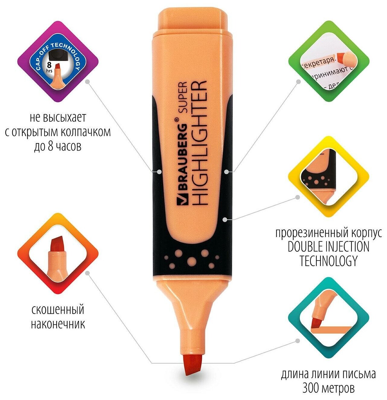 10 цен на Текстовыделитель BRAUBERG "SUPER PASTEL", персиковый, прорезиненный корпус, линия 1-5 мм, 151750 (арт. 151750)